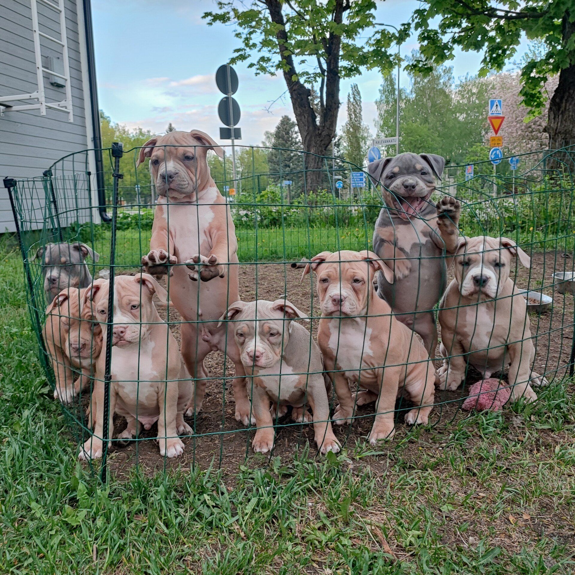 We're an American Bully breeder from Finland. All of our dogs are imported from the United States and our goal is to produce healthy dogs so our dogs are health tested, with good results.